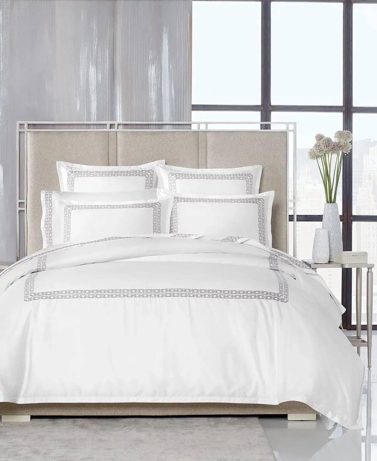 Juego de sábanas de 4 piezas con bordado de eslabones de cadena, 100 % algodón Pima, tamaño Queen