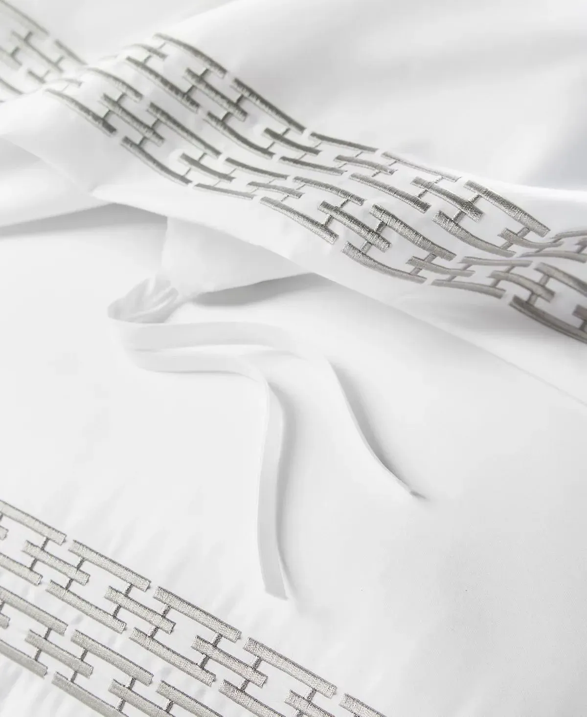 Juego de sábanas de 4 piezas con bordado de eslabones de cadena, 100 % algodón Pima, tamaño Queen